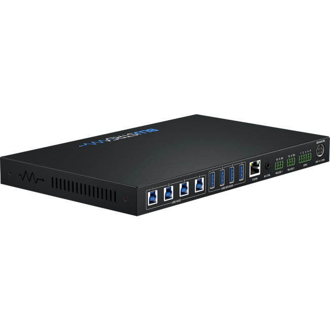 The MX44KVM is a USB 3.0 Matrix package allowing 4x USB peripheral devices to be shared between 4x host devices, supporting plug-and-play capabilities, and USB data transfer rates up to 5Gbps.