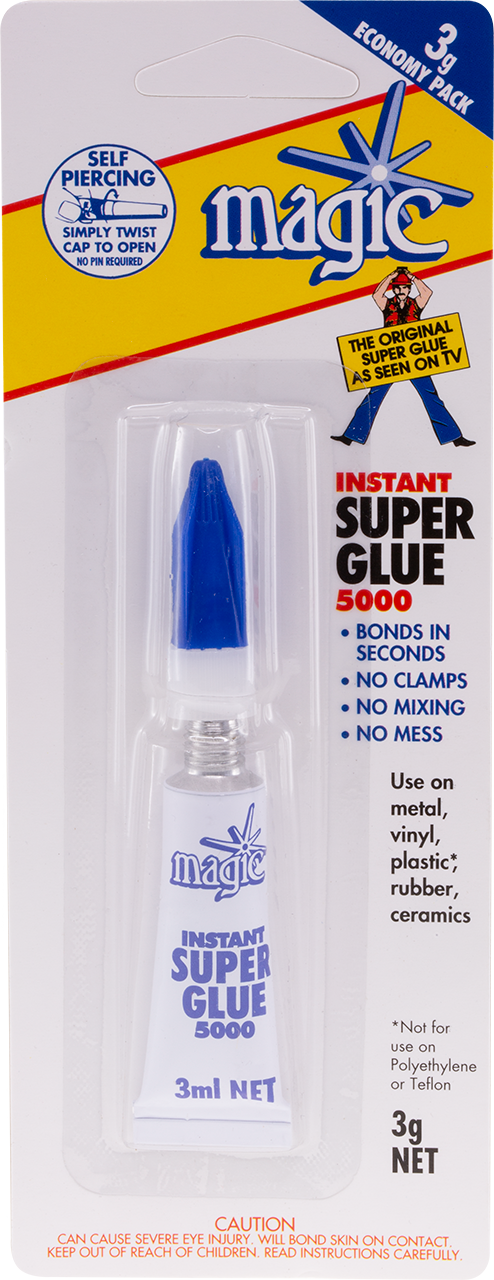 - No Clamps no mess. General purpose super glue for everyday use. Will bond metals most plastics, rubber, ceramics, vinyl and most non-porous surfaces.
