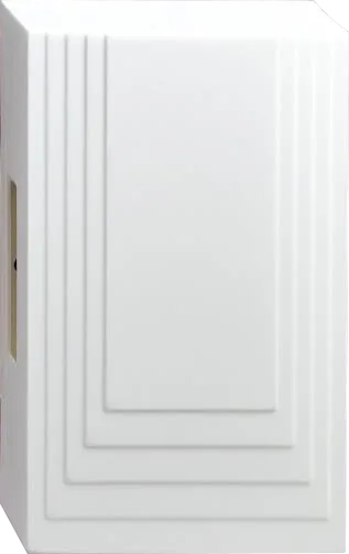 A door chime with a multi-faceted cover designed to create a light & shade effect. 4 x 'C' batteries or D780 transformer (not inc.) White cover, Grey base Size: 171x105x49mm