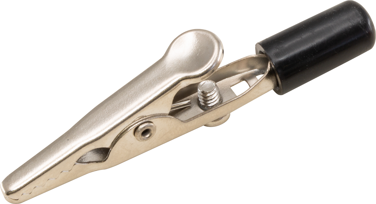 Alligator clip with moulded handle and screw termination. Overall Length: 58mm Colour: Red