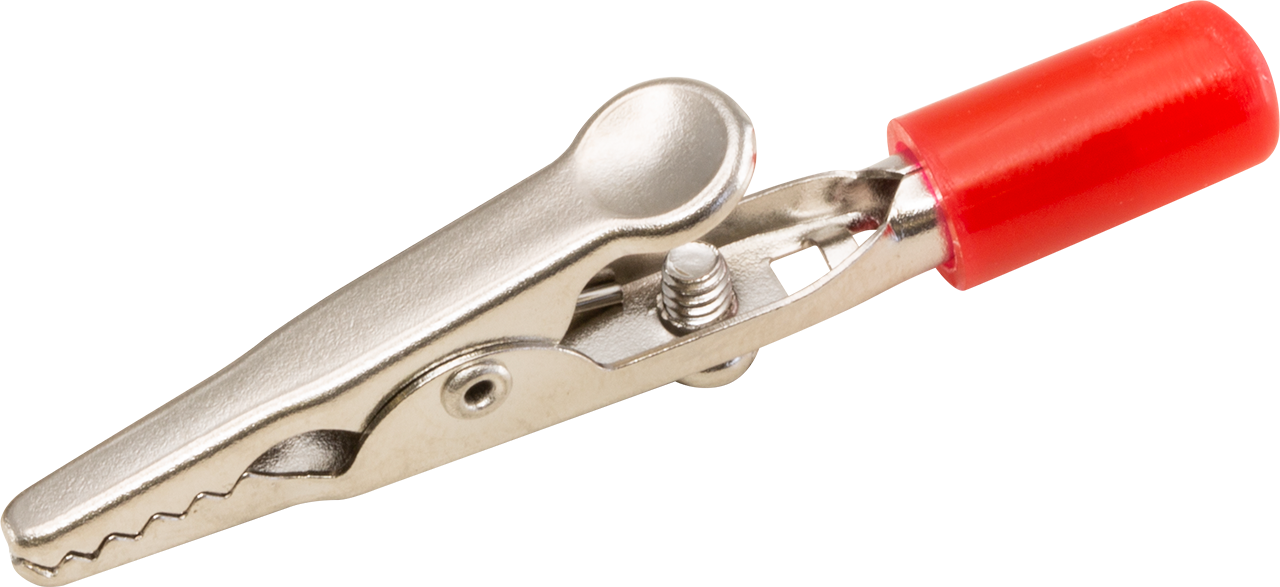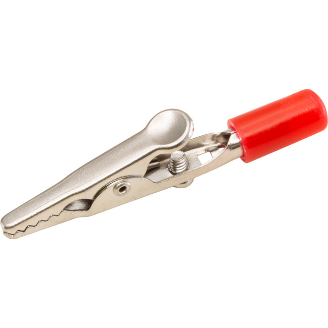 Alligator clip with moulded handle and screw termination. Overall Length: 58mm Colour: Black