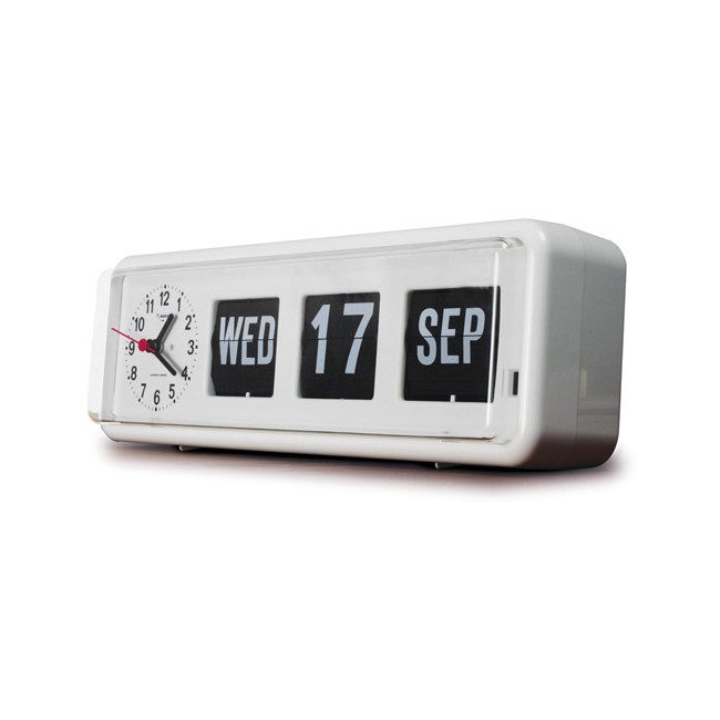 Features include a reliable German movement and an automatic calendar function that self-adjusts for leap years. The flip card display remains readable under fluorescent lighting, unlike many LCD clocks.