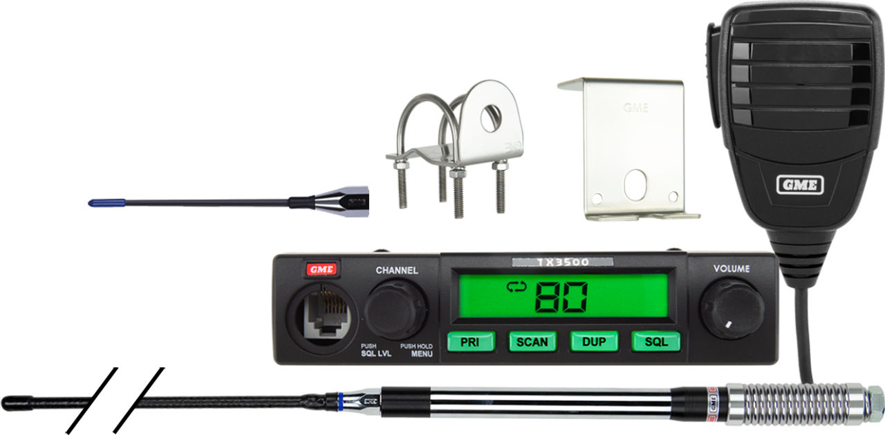 Synonymous with quality and reliability, the GME TX3500S is one of the most advanced 5 Watt UHF CB radios of its kind. Equipped with GME's newest digital scanning technology-ScanSuite?and an impressive feature list that includes Digital Signal Processing, Advanced Signal Management, Dynamic Volume Control and 19 extra receive channels. With CTCSS and DCS this radio ensures more privacy and less interruption.