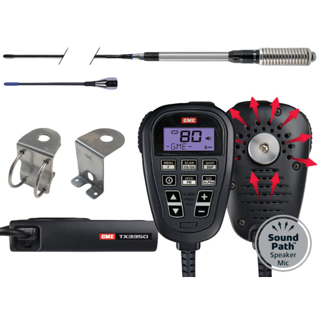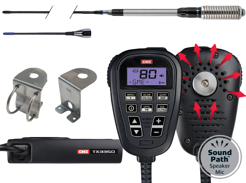 The TX3350 is an 80 channel, feature packed super compactUHF CB radio with the new SoundPath? full function LCD Speaker Microphone.