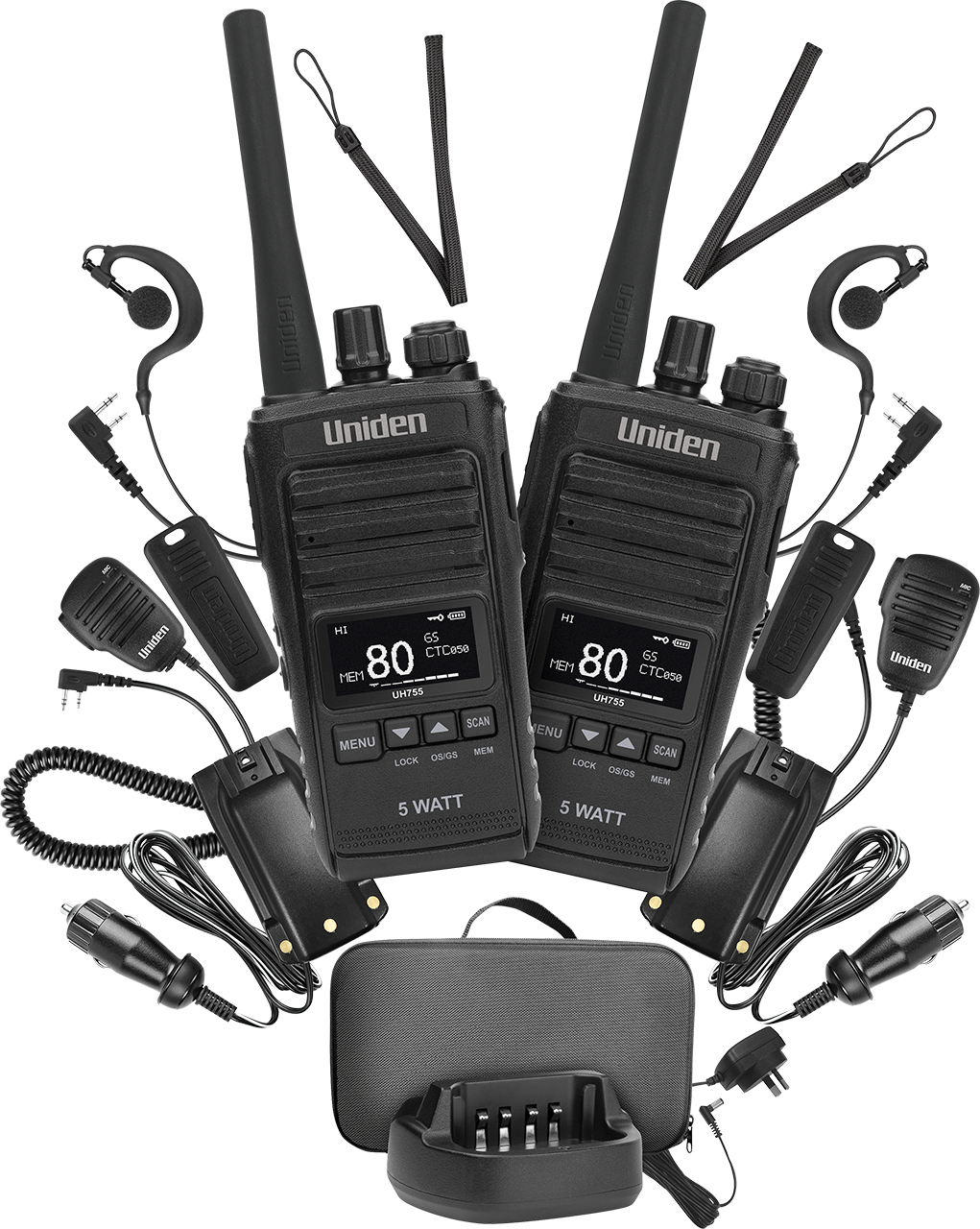 The UH755-2DLX UHF CB handheld radio is a solid 5Watt power UHF radio that can deliver up to 17km# of range. This makes it the perfect unit for professionals who need a rugged and heavy duty radio suitable for various conditions.