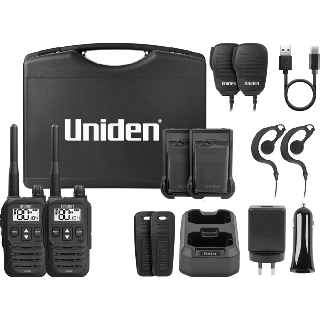 Presenting Uniden s latest in UHF technology. The UH825-2TP is a compact 80 Channel 2 Watt hand-held radio built for rugged Australian and New Zealand conditions making it ideal for Commercial Use, Hiking, Construction Sites and Restaurants. With the finest components, unique engineering and styling, the UH825-2TP offers outstanding performance adaptable in various conditions and situations. The UH825-2TP now comes in a Tradies Pack with all the accessories you need to keep connected.