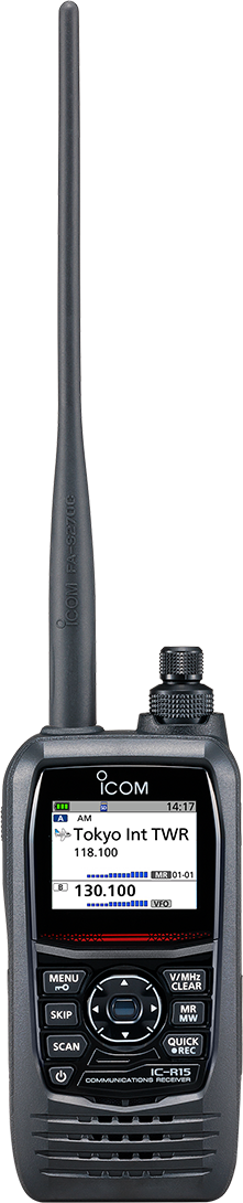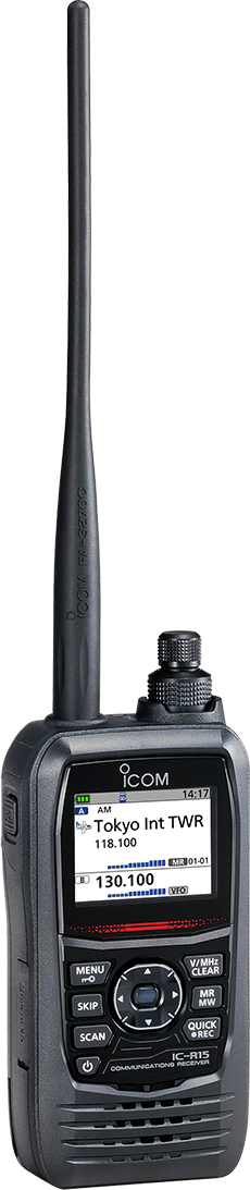 The IC-R15’s large color LCD has excellent visibility and displays a lot of information. Easy to understand display of received information, broadcasting station, airport names and so on. Introducing a graphical icon menu that enables you to check various items briefly, and smooth setting and intuitive operation are possible.