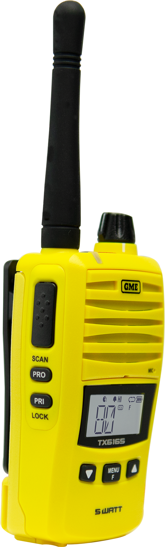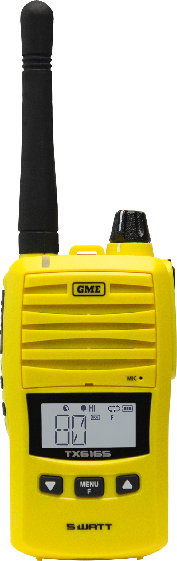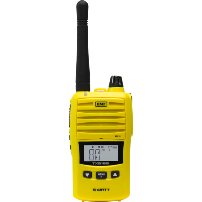 The TX6165 is GME’s newest 5W Handheld UHF CB radio. New, class-leading features such as the large high contrast LCD display, 2W speaker, and a user-programable button makes it stand out from the field.