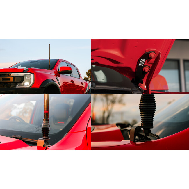 The BHM can be installed without the need to modify the vehicle, giving customers without a bull-bar or other mounting location a simple and easy antenna mounting option. The profile of the BHM allows for the mount to exit at the rear of the bonnet while maintaining full functionality of both the bonnet and windscreen wipers.Made of high-quality materials ensuring strength and durability whilst providing a neat and professional finish. The added antenna cable slot allows for a simple and easy removal of the antenna if required.