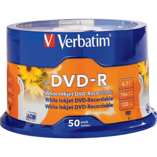 Combining an exceptional inkjet printable surface withAdvanced Azo professional grade recording performance and reliability, Verbatim White Inkjet Printable discs are the ultimate choice for developing, customising and distributingDVD content. These discs have been extensively tested and qualified for use with DVD/CD Inkjet printers and duplicators. Perfect for low volume DVD duplication, these discs allow users to customise their DVD titles with beautiful full colour art.