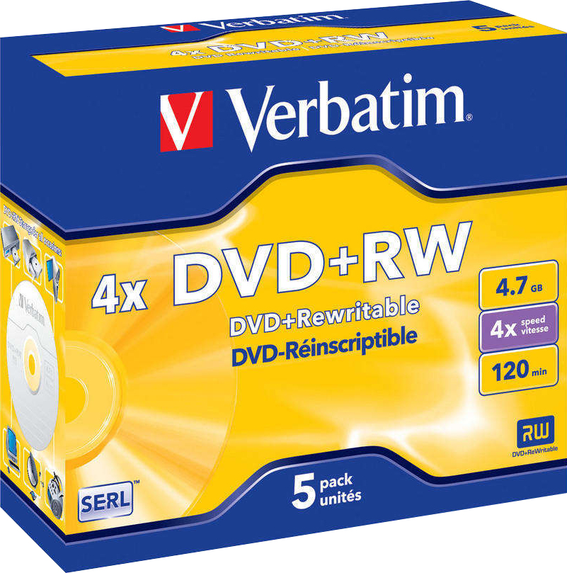 Verbatim DVD RW offers 4.7GB or 120 Minutes of rewritablestorage capacity, superior recording quality, and compatibility with 1X to 4X DVD RW writers. Verbatim 4X DVD RW is ideal for archiving or backing up 4.7GB of data or120 minutes of DVD-quality video. Preferred by DVD drive manufacturers, Verbatim DVD RW utilises Super Eutectic Recording Layer (SERL) recording dye, which minimises noise during write/rewrite cycles and provides superior archival stability. Verbatim 4X DVD RW media is compatible with most DVD-ROM drives as well as writers from Sony, Dell, HP, Compaq and other major DVD R/ RW drive manufacturers.