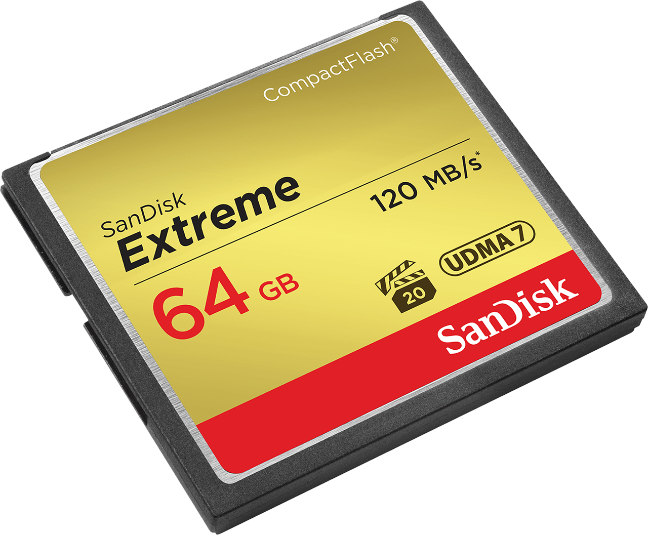 Ideal for use with mid-range to high-end DSLR cameras andHD camcorders, the SanDisk Extreme CompactFlash Memory Card delivers first-rate read/write speeds to catch fast action shots and enable quick file transfers. This memory card features Video Performance Guarantee (VPG-20) to deliver a minimum sustained recording data rate of 20MB/s to support high-quality Full HD video (1080p) recording. Take advantageof burst-mode photography with the card's write speeds of upto 85MB/s (800X) and enjoy efficient workflow with its transfer speeds up to 120MB/s, this memory card provides plenty of storage for Full HD videos and RAW photos.