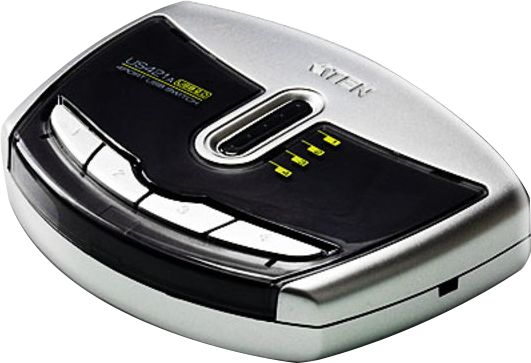 US421 allows 4 computers to share the same USB peripheralunder the foundation of one-at-a-time. Users can switch the computer controlling the peripheral from the simple hotkeys or buttons on the front panel or the control software on Windows. It is ideal for SOHO environments.Enables four computers to share a single USB peripheral device.
