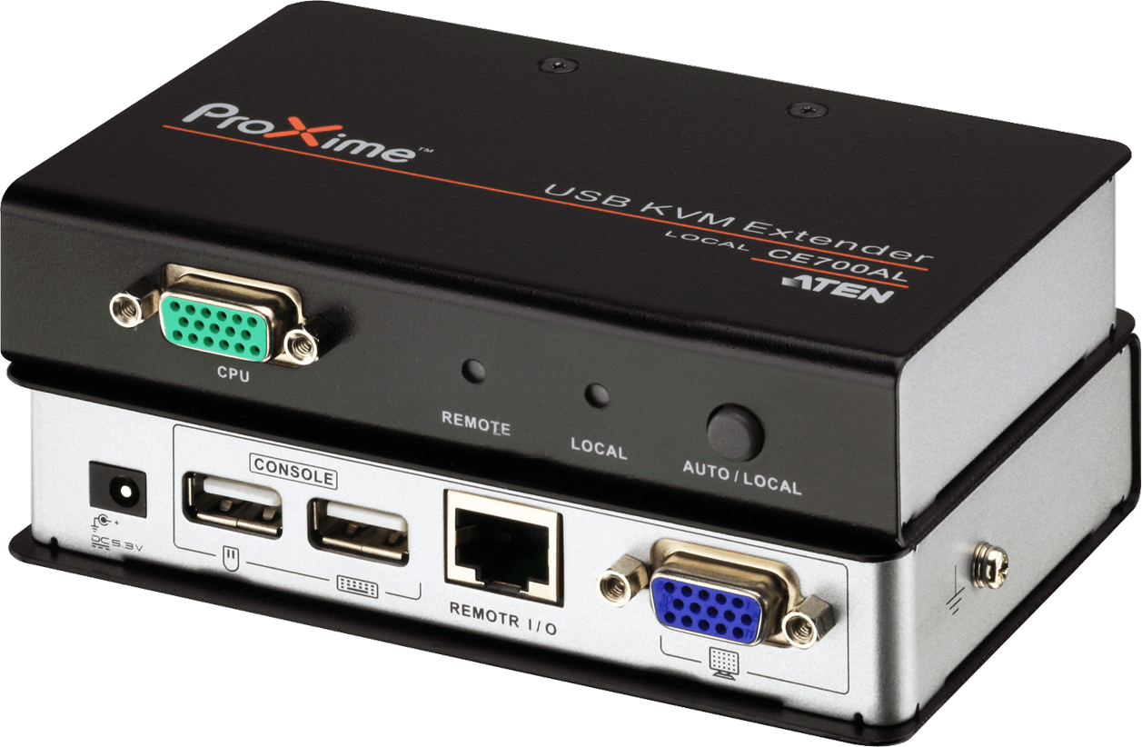 The CE700A is a USB KVM Extender with superior video quality and built-in ESD and surge protection that allows access to a computer system up to 150 meters away from a remote USB console (USB keyboard, monitor, and USB mouse).