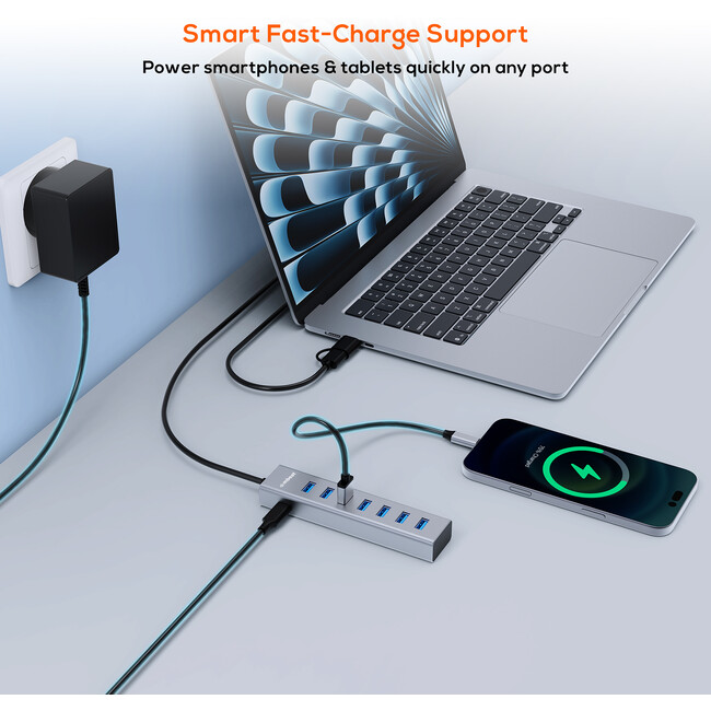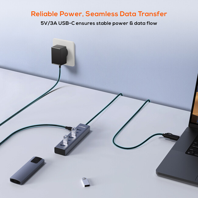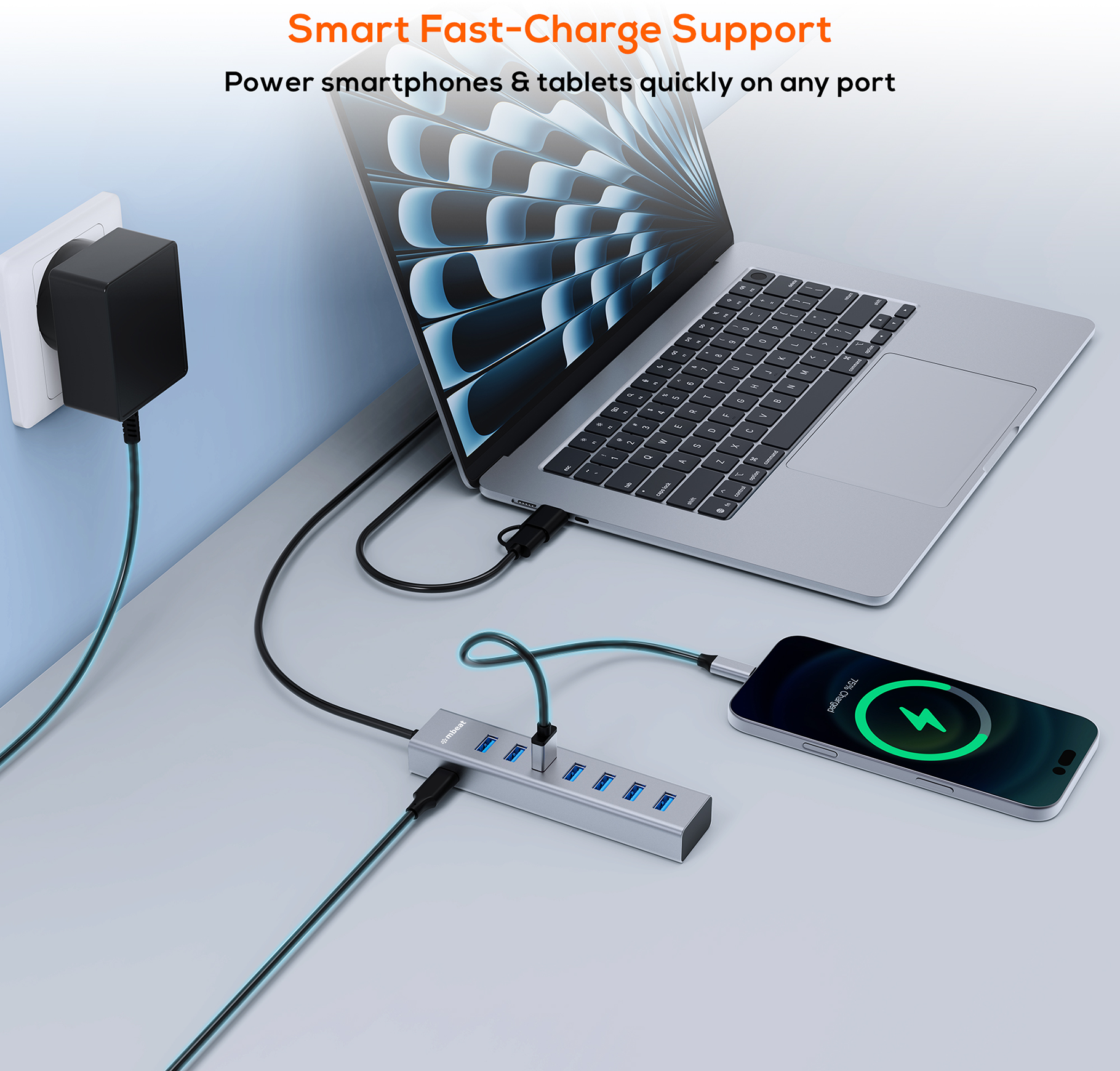 Enjoy fast data transfers with 5Gbps speed across all seven USB-A ports — ideal for external storage, peripherals, and daily device use.
