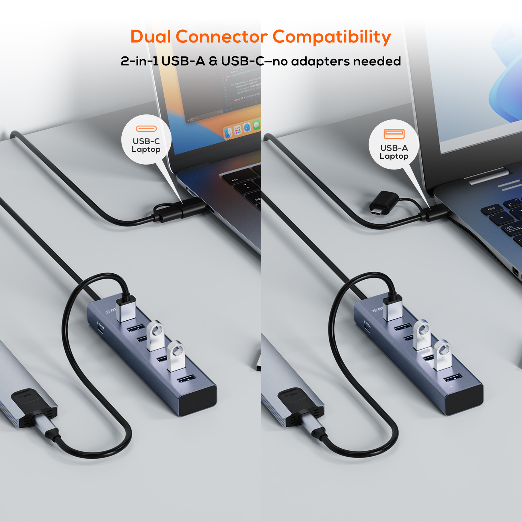 7-Port USB Hub with Dual USB-A & USB-C Connector