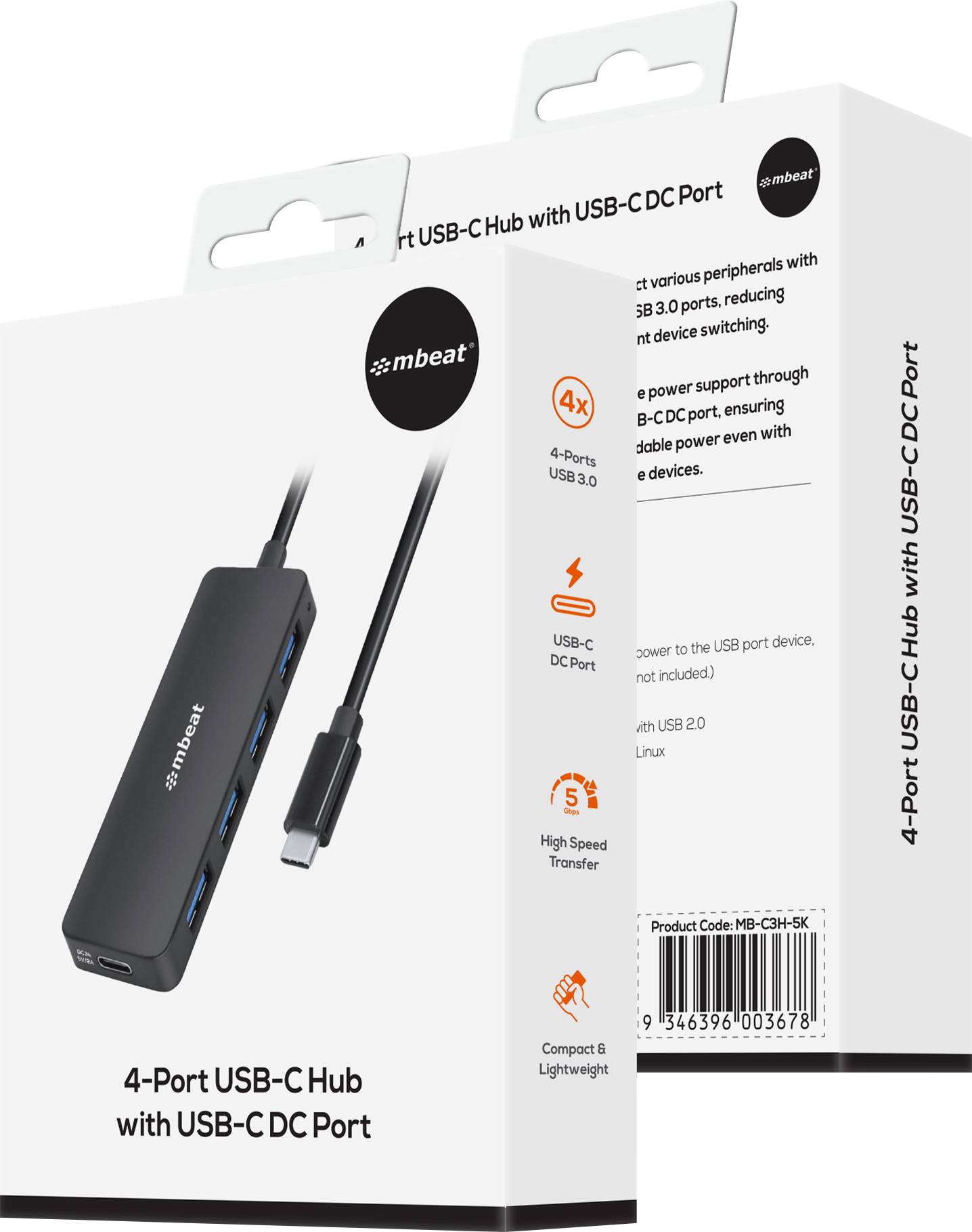 - Highly portable with a sleek design, the mbeat 4-Port USB-C Hub is perfect for professionals on the move.
