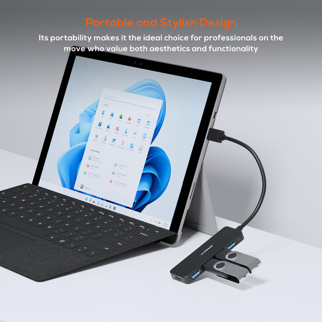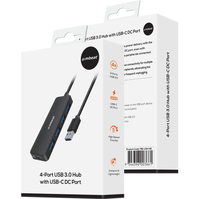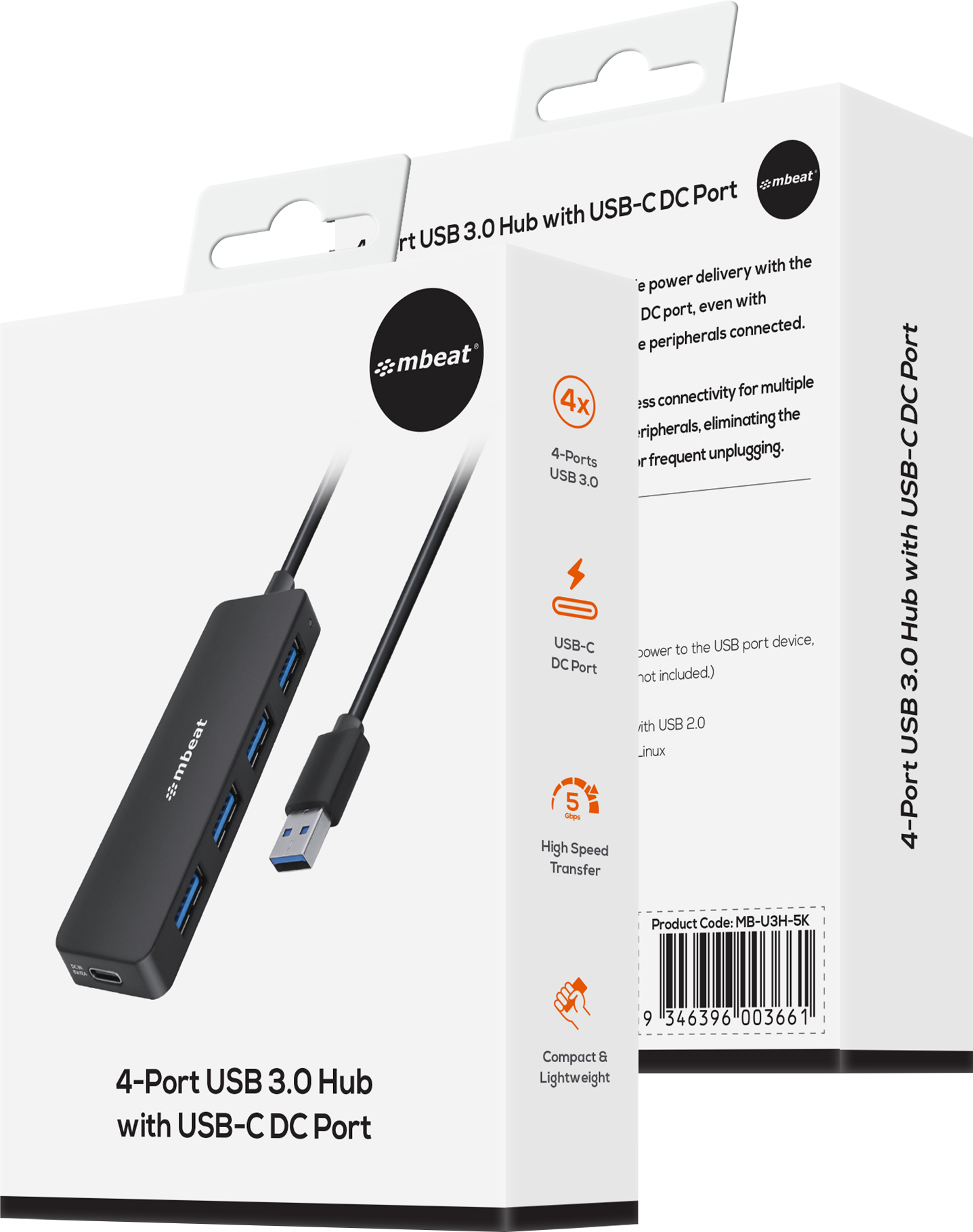 Compact and Portable DesignThe mbeat 4-Port USB 3.0 Hub boasts a sleek and compact design, making it highly portable and ideal for professionals on the go.