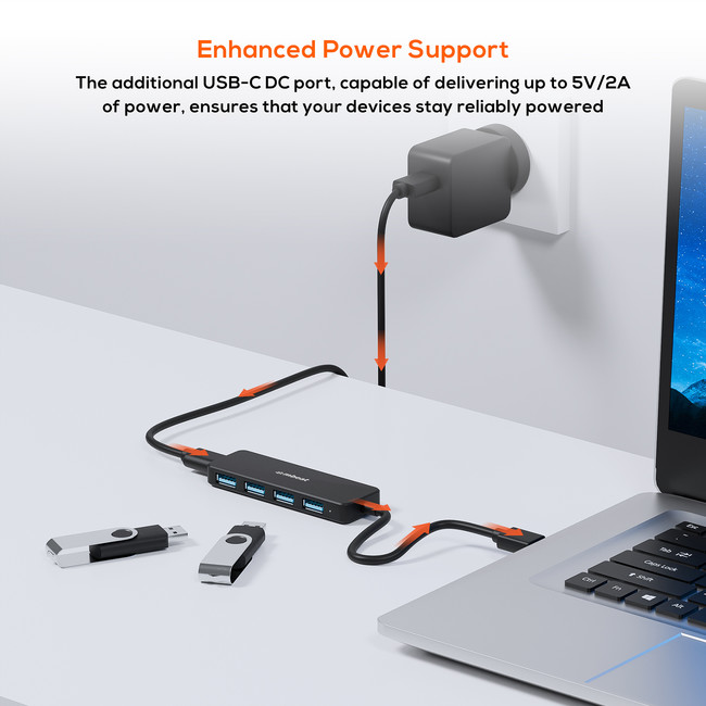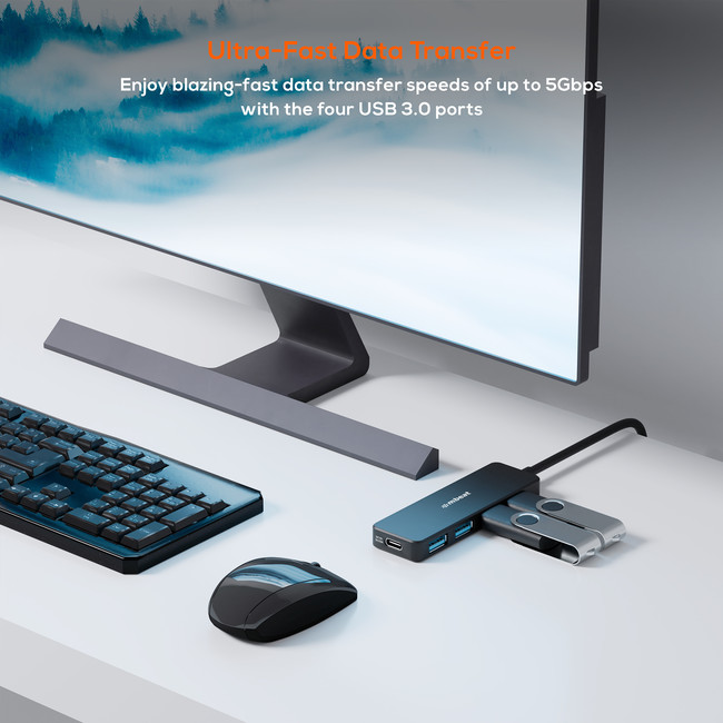 Ultra-Fast Data TransferEnjoy blazing-fast data transfer speeds of up to 5Gbps with the four USB 3.0 ports. This hub ensures rapid and efficient file transfers, saving you valuable time.