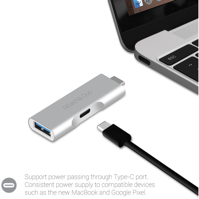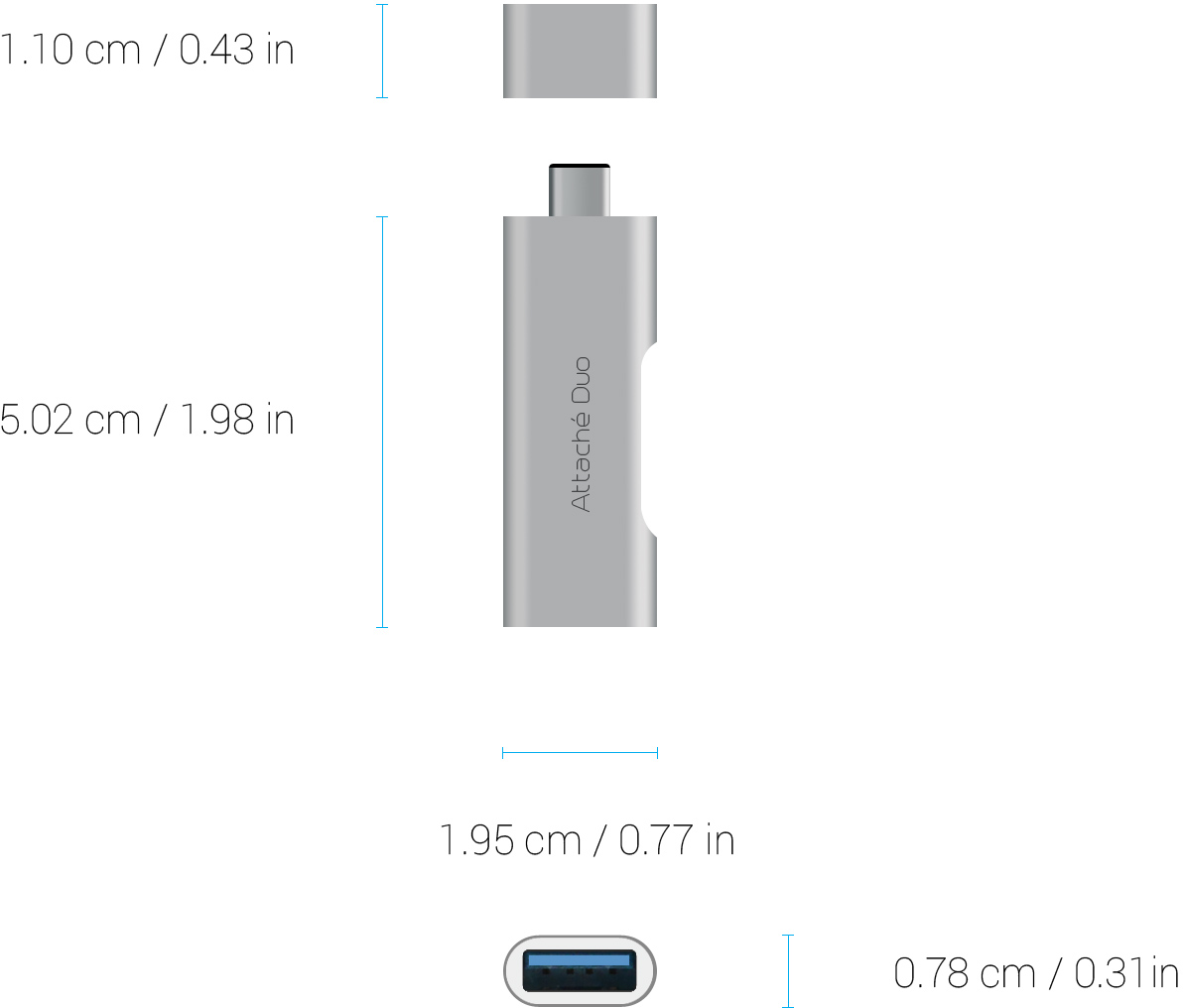 Attaché Duo Type-C to USB 3.1 Hub with Type-C Charging Port