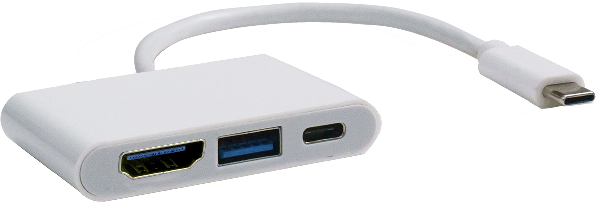This 3 port USB-C hub has 1 × USB3.0 port, 1 × USB-C port and 1 × HDMI port