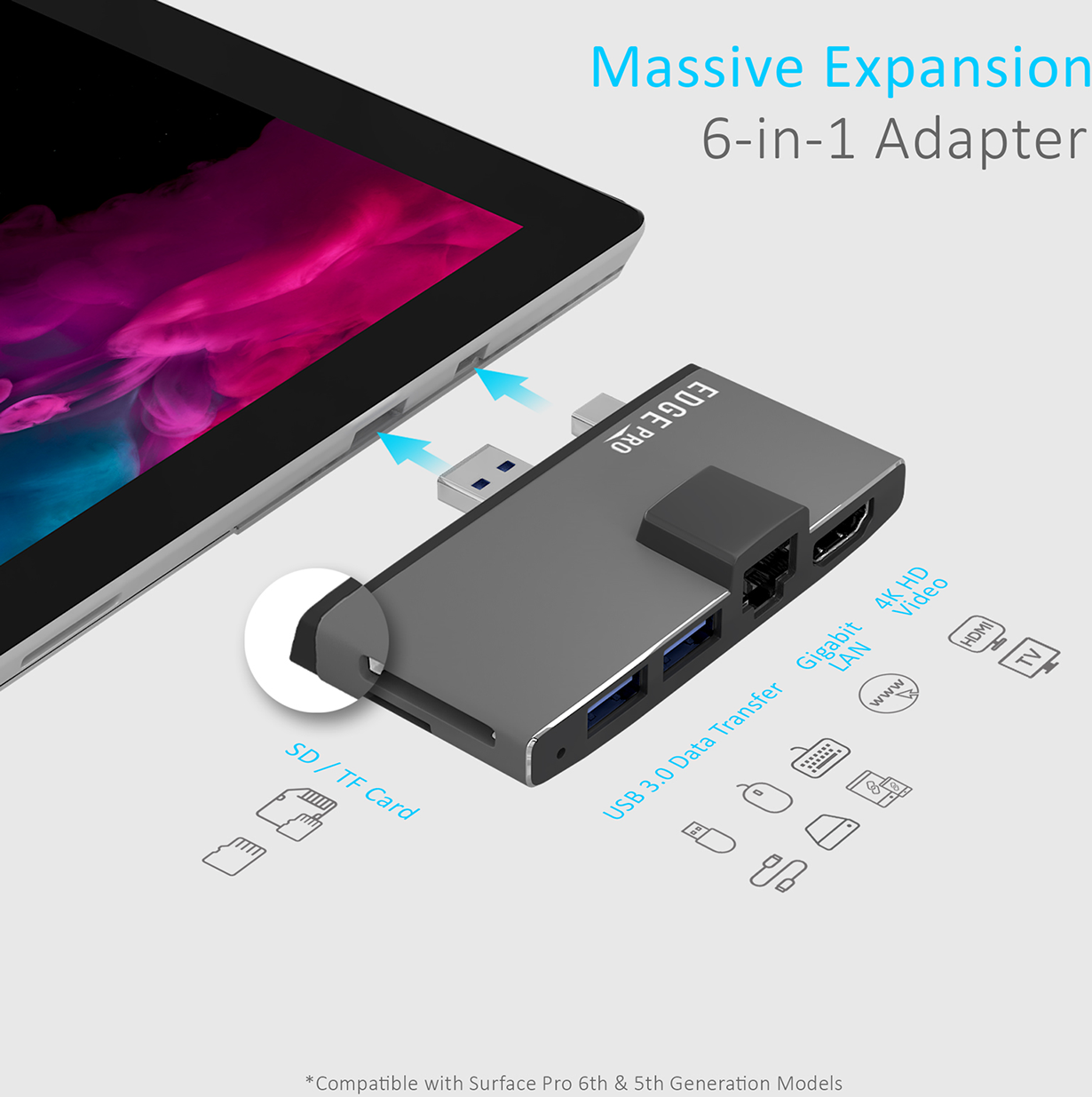 The Edge Pro P68 Multifunction hub is a multi-purpose USB3.0 adapter designed exclusively to maximise the potential of your Microsoft Surface Pro Gen 5 & Gen 6 tablets.