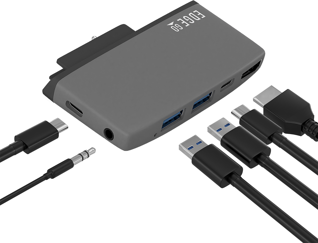 Edge Go hub features USB 3.0 data x2, USB-C data x1, USB-C power pass-thru port x1, HDMI port x1 and 3.5mm audio out x1