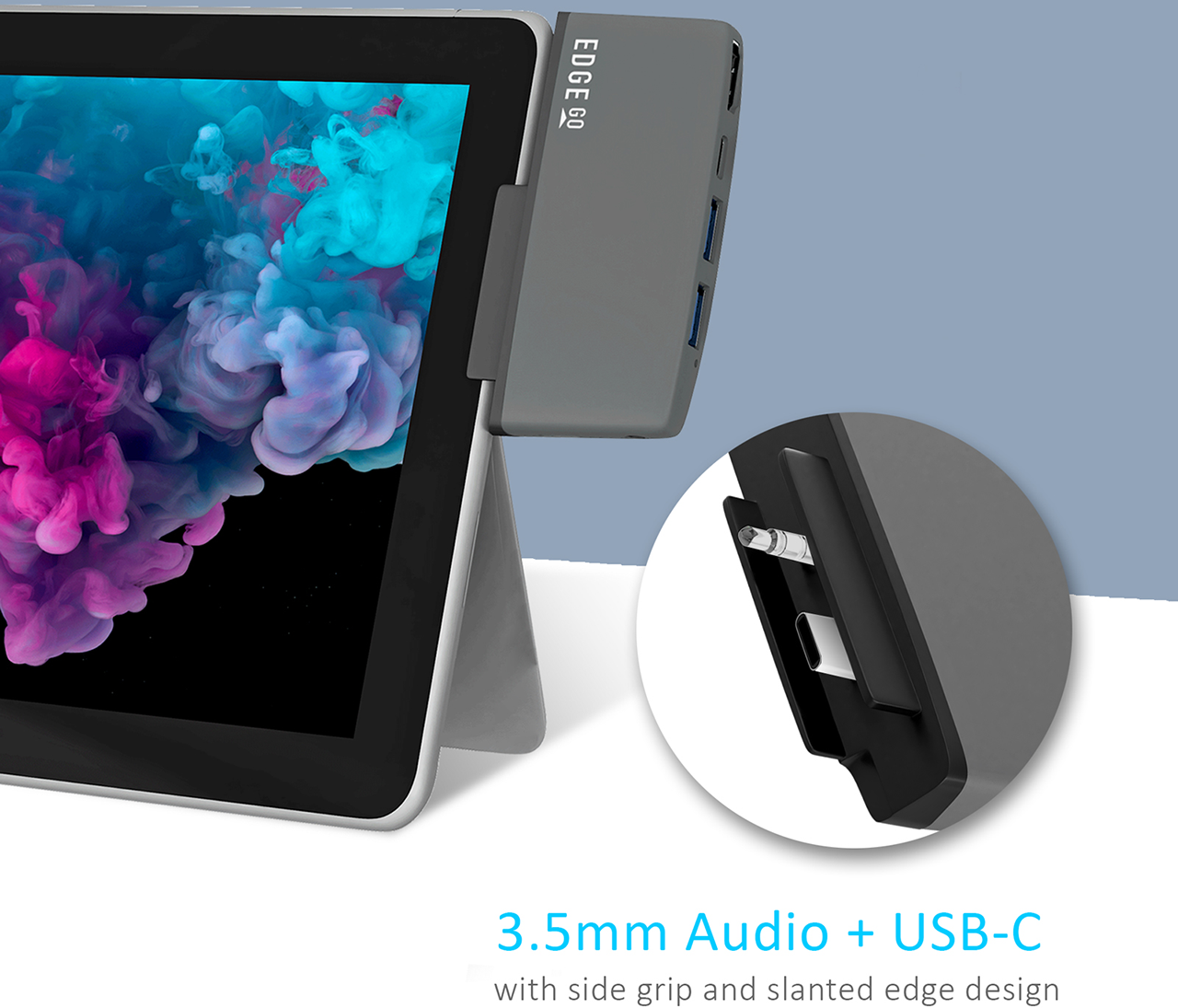 Sleek and Elegant The Edge Go USB-C hub is a multi-purpose USB-C adapter designed exclusively for the latest Microsoft Surface Go tablet.