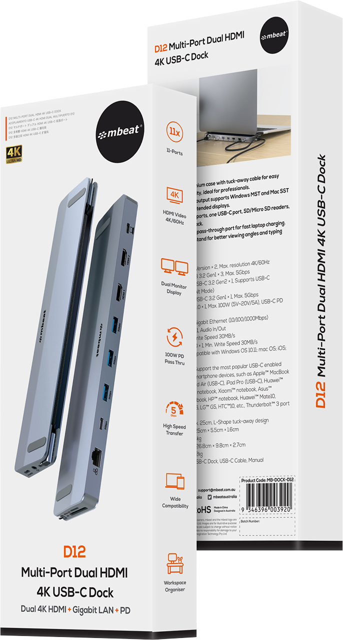 | Dual Display (Connecting with USB-C DP 1.4 Version Laptop) | 4K @ 60Hz (3840 × 2160 @ 60Hz) |