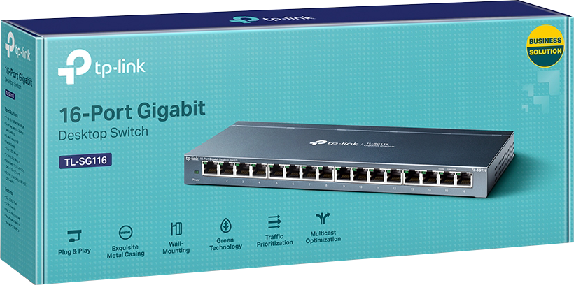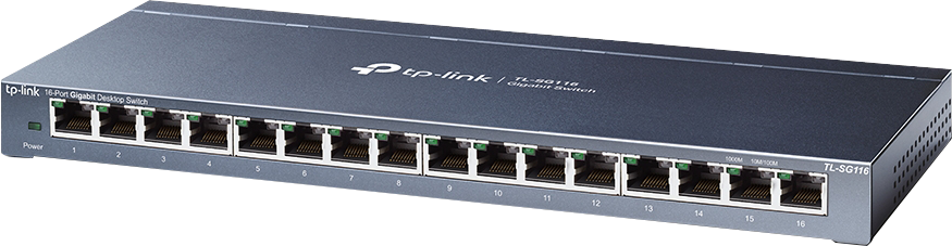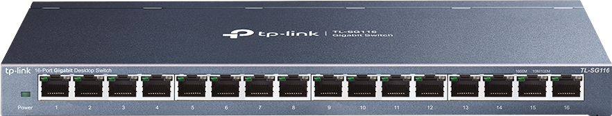 Featured with 16 10/100/1000 Mbps ports, TL-SG116 dramatically expands your network capacity, enabling instant large files transferring. So, power users in the home, office, work group, or creative production environment can now move large, bandwidth-intensive files faster. Transfer graphics, CGI, CAD, or multimedia files across the network instantly.
