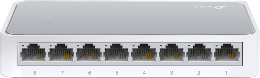TL-SF1008D 8-port 10/100 Mbps Fast Ethernet Switch provides 8 × 10/100 Mbps Auto-Negotiation RJ45 ports. All ports support Auto MDI/MDIX function, eliminating the need for crossover cables or Uplink ports. The Switch is Plug-and-Play and each port can be used as general ports or Uplink ports and can be simply plugged into a server, a hub or a switch, using straight cable or crossover cable.