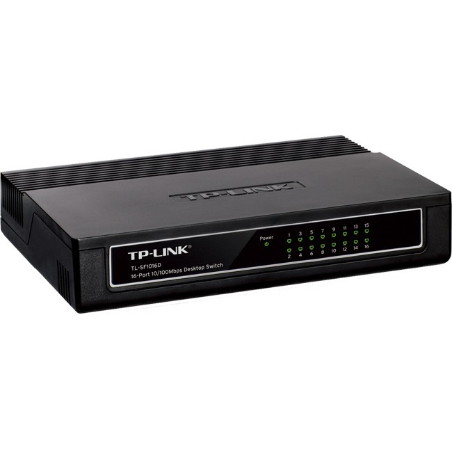 The TP-LINK TL-SF1016D 16-port 10/100M Fast Ethernet Switch provides you with a low-cost, easy-to-use, high-performance, seamless and standard upgrade to improveyour old network to a 100 Mbps network. It will boost your network performance up to full duplex data transfer. Its wire-speed switching that forwards packets can be as fast as the speed that your network delivers those packets to them.