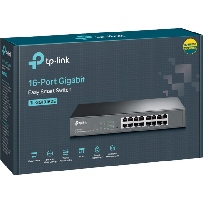 TP-LINK's Gigabit Easy Smart switch, TL-SG1016DE offers network monitoring for users to observe traffic behavior. With Port Mirroring, Loop Prevention and Cable Diagnostics features, TL-SG1016DE can identify and even locate connection problems on your business network. Moreover, administrators can designate the priority of the traffic based on Port Priority and Port / 802.1p / DSCP Priority, to ensure that voice and video are always clear, smooth and lag-free. Additionally, to improve security and network performance, TL-SG1016DE supports MTU VLAN, port-based VLAN and 802.1Q-based VLAN functions. TL-SG1016DE is an upgrade from the plug-and-play Unmanaged Switch, delivering great value while empowering your network and similarly deliveringgreat value to the end user.