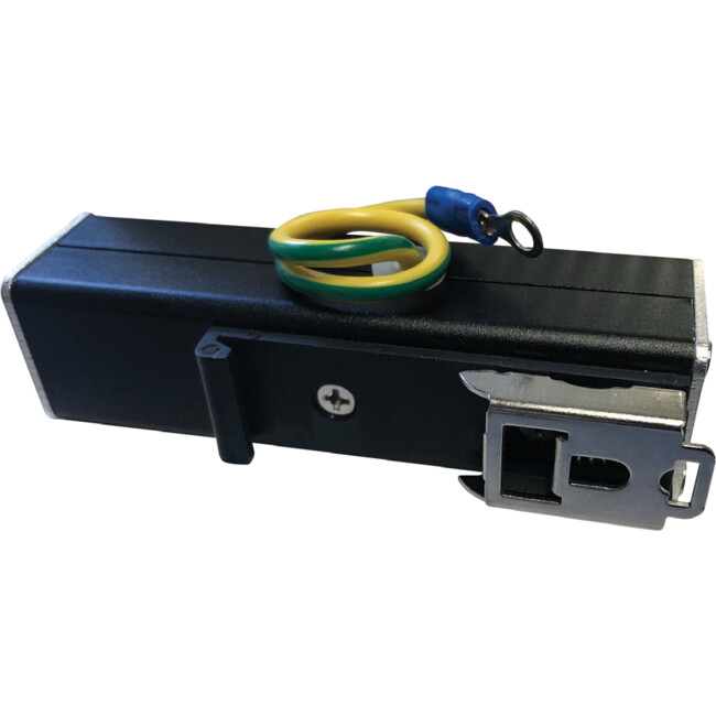 Introducing the Smart Series RJ45-S single, in-line high speed network protection. Line induced spikes and voltage surges that could damage the Network Connected Devices are easily suppressed by the RJ45-S. This unit is DIN rail mountable and fits in-line between the Source Device and the connected unit (ie Network Camera and NVR, PC and Network Switch). The unit uses two standard RJ Connectors for easy connecting and disconnecting. Damaging energy is diverted to system earth by means of fast acting components, the earth connection is connected via a plug allowing for quick removal or replacement of the device.