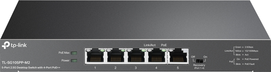 TLSG105PPM2 5 PORT 2.5G MULTI-GIGA SWITCH WITH 4 POE++ PORTS