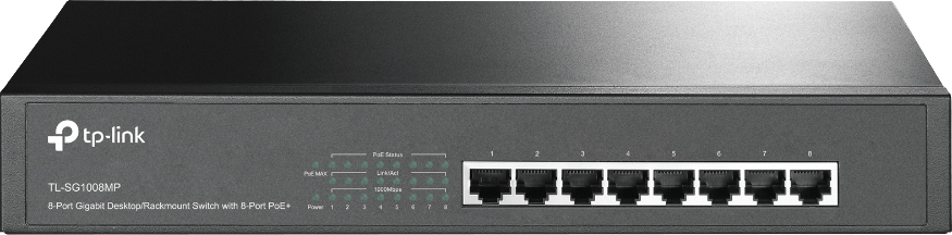 TL-SG1008MP is easy to install and use. It requires no configuration or installation. With its Desktop/Rack mountable design, outstanding performance and quality, the TP-Link TL-SG1008MP 8-Port Gigabit Desktop/Rack mountable Switch with 8-Port PoE is a great choice for expanding your home or office network.