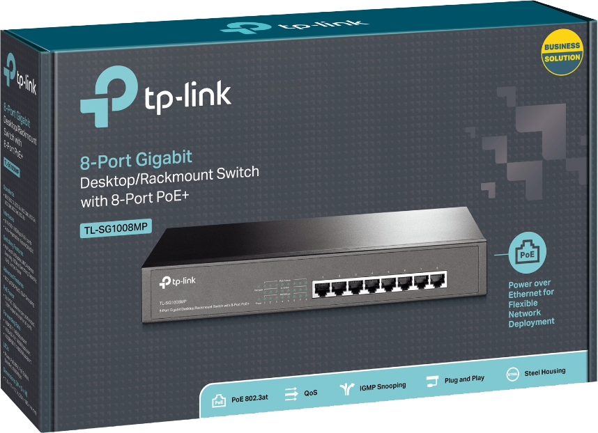 The TL-SG1008MP is an 8-Port Gigabit Desktop/Rack mountable Switch with all 8 ports supporting the PoE+ standard. It provides a simple way to expand a wired networkby transferring power and data over a single Ethernet Cable.With a total power budget of 126W, up to 30W per port, TL-SG1008MP can power more high-powered devices such as wireless Access Points (APs), IP Cameras or IP Phones. Moreover, with innovative energy-efficient technology, the TL-SG1008MP can save up to 75% of the power consumption, making it an eco-friendly solution for your business network.