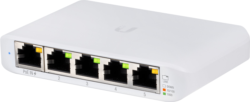 Build and expand your network with the UniFi® Switch,part of the Ubiquiti Networks® UniFi Enterprise System. The UniFi Switch, model USW-Flex-Mini, is a smart managed Gigabit switch. It offers 5 RJ45 Ethernet ports, providing 1Gigabit links to your devices. The 5-Port managed Gigabit Ethernet Switch can be powered by 802.3af/at PoE switch, PoEAdapter (Model USW-FLEX-MINI-NPS), or 5V, 1A USB-C power adapter (Model USW-FLEX-MINI-PS).