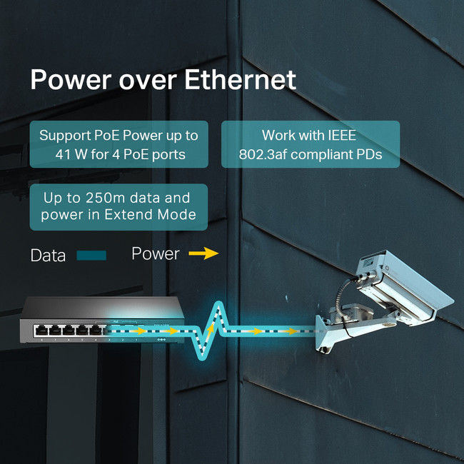 • 4× PoEports transfer data and power on individual cables