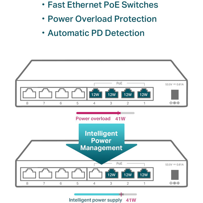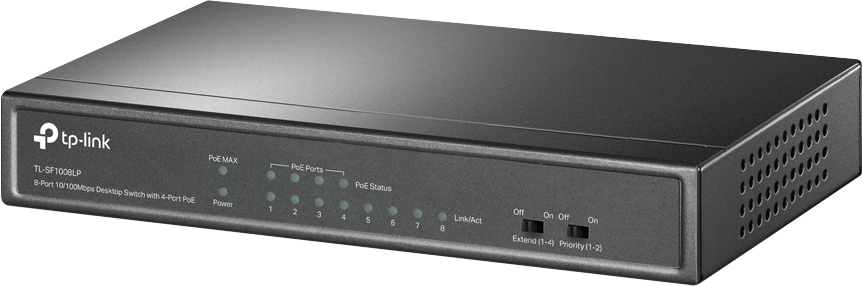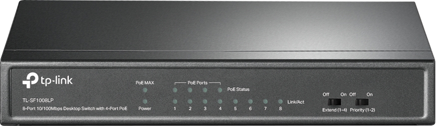 TP-Link TL-SF1008LP 8-Port 10/100Mbps Desktop Switch with 4-Port PoE, Up To 41W For all PoE Ports