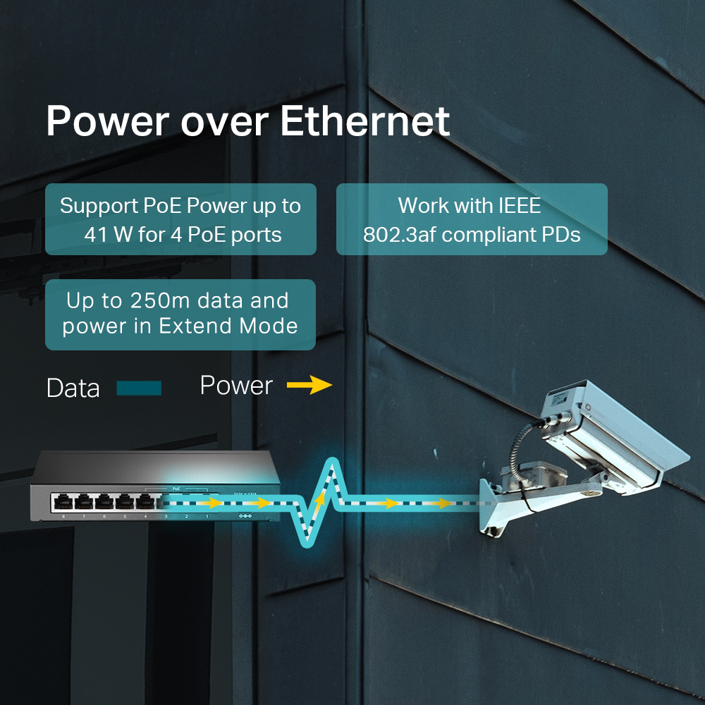 Interface • 8× 10/100 Mbps RJ45 Ports (Ports 1–4 support 802.3af PoE)