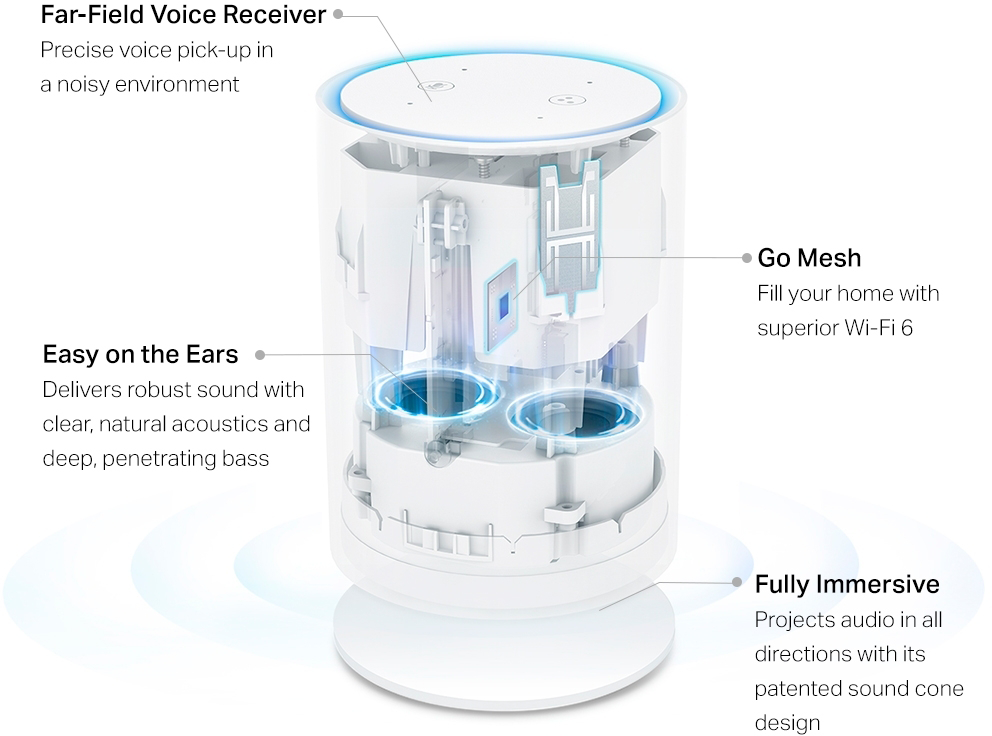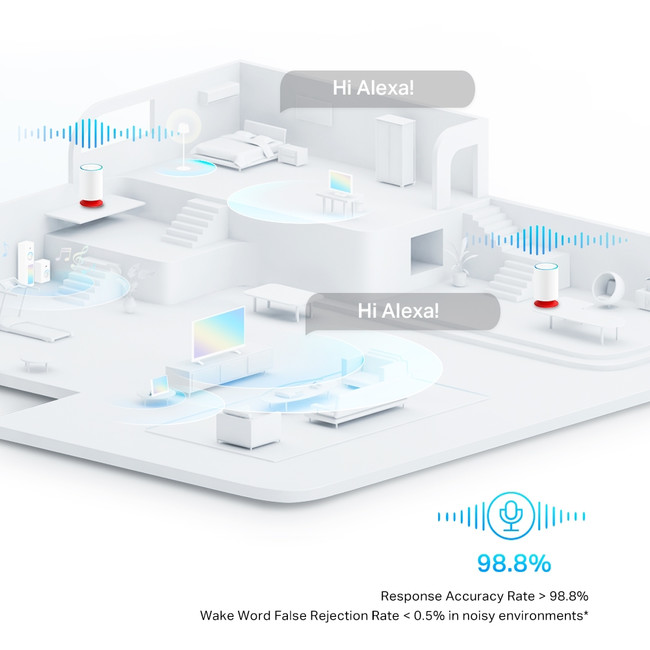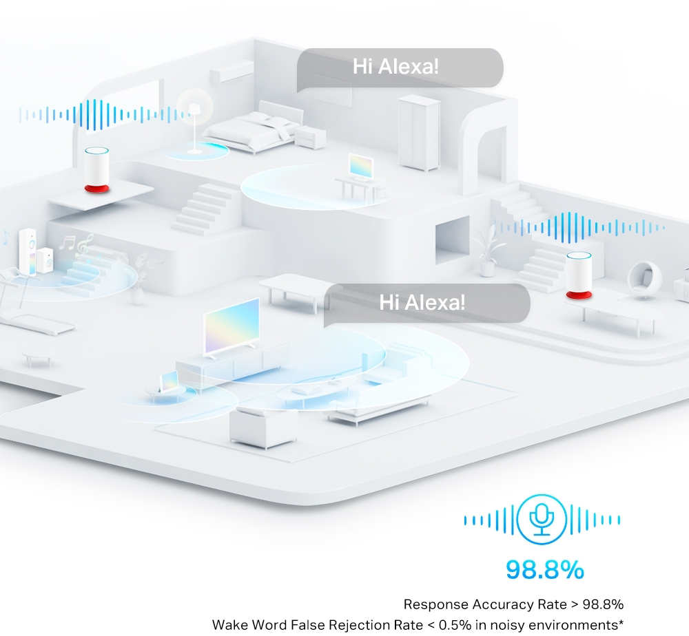 The powerful microphone array and sensitive acoustic algorithm enable accurate far-field voice recognition, ensuring Alexa hears you through the background noise. Walkthrough your home and command your devices from everywhere with nearby Deco Voice units always able to respond