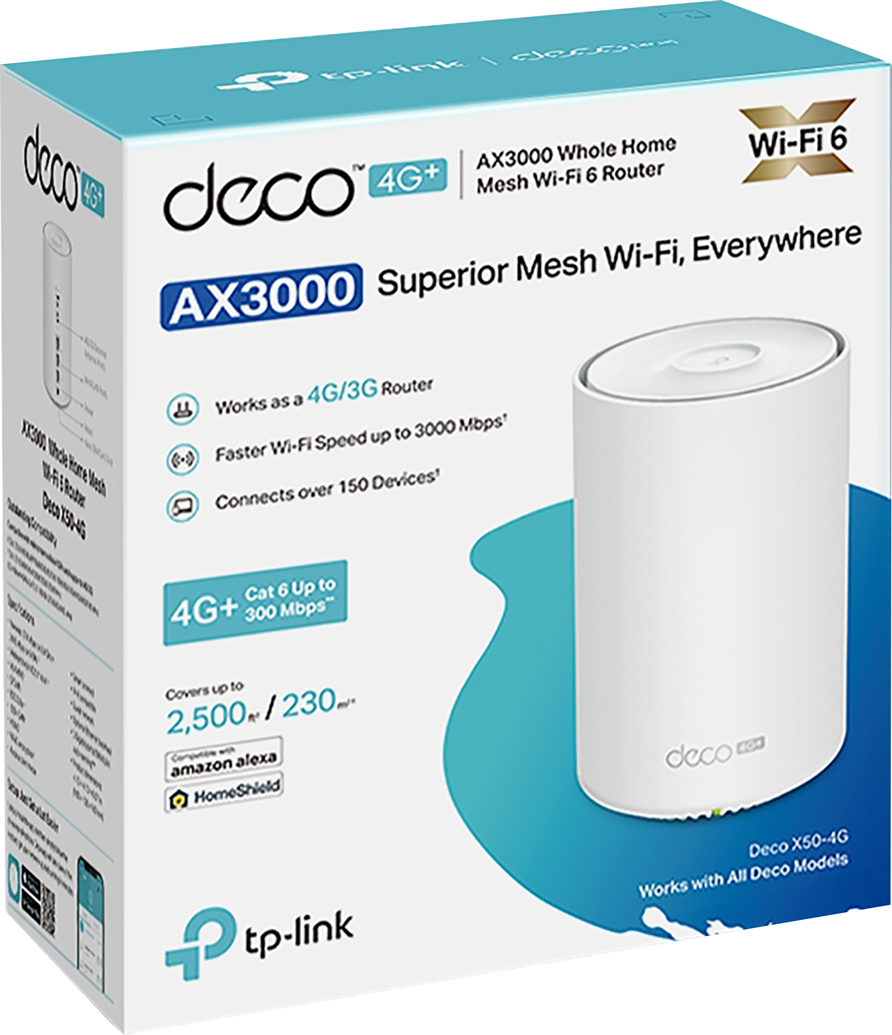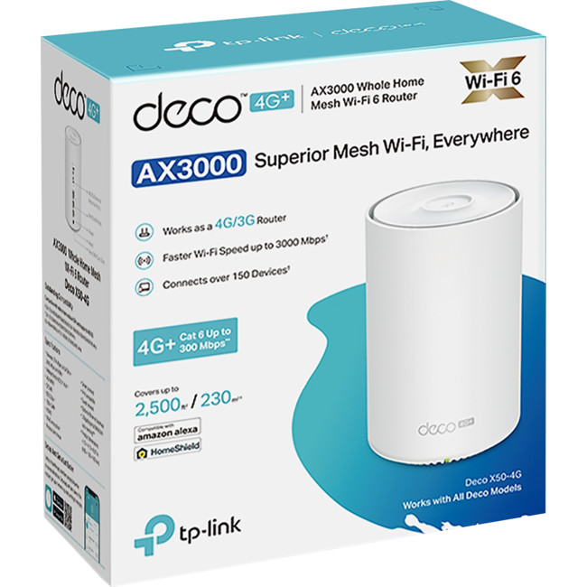 TP-Link Deco X50-4G(1-pack) 4G AX3000 Whole Home Mesh Wi-Fi 6 Router, Build-In 300Mbps 4G LTE Advanced Modem