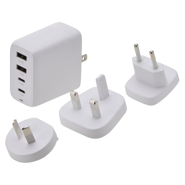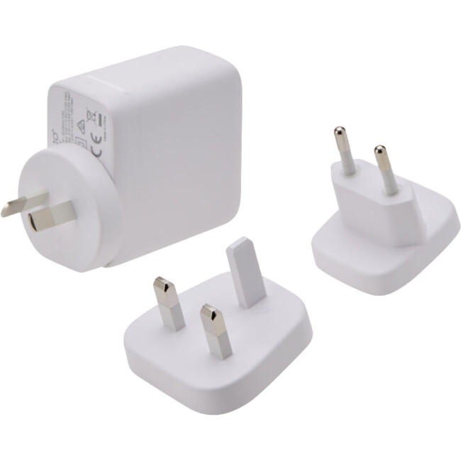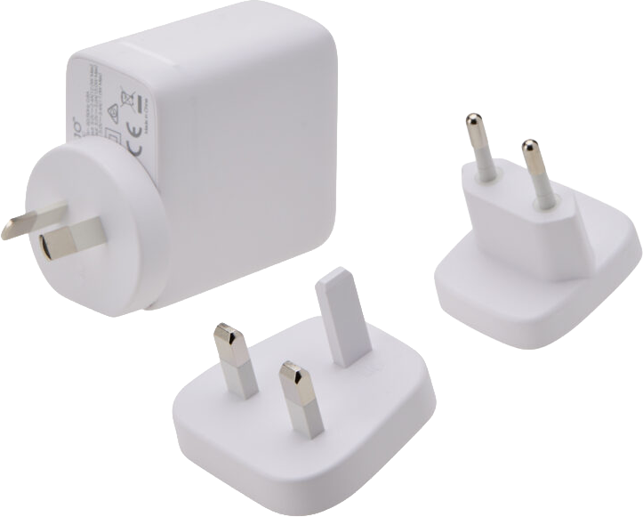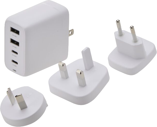 - Four interchangeable plugs included – AUS/NZ, EU, UK, US