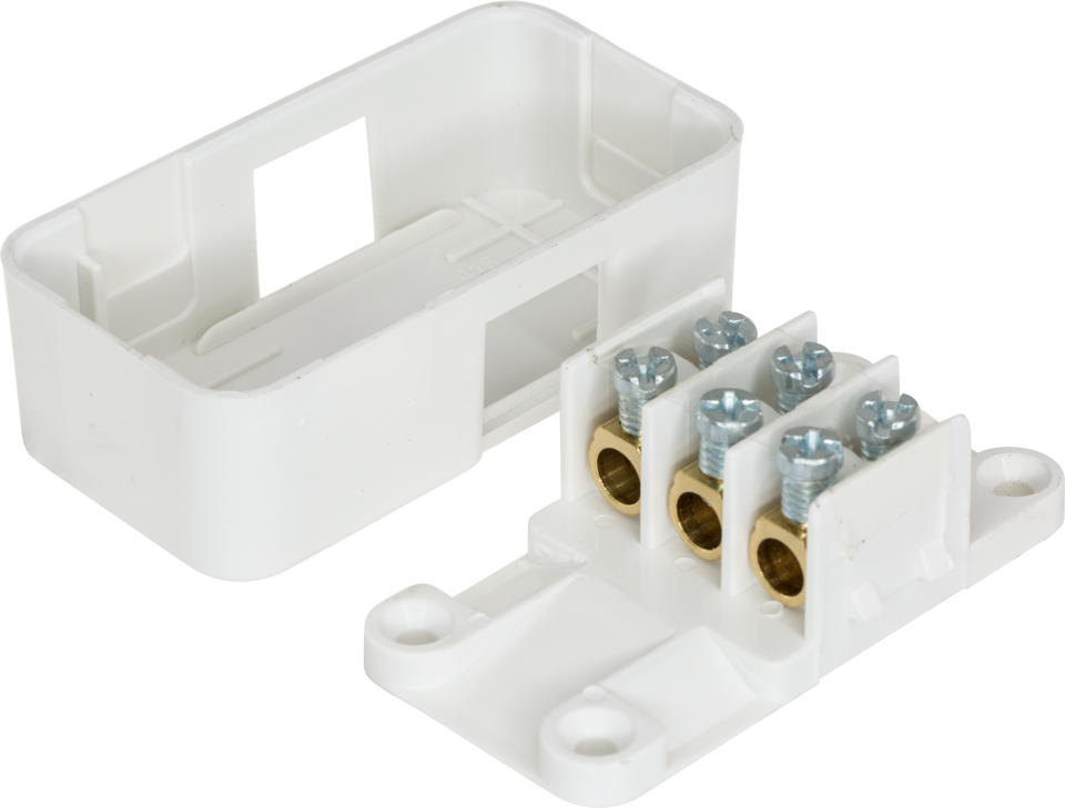 Easy wiring miniature size junction box with 3 x 30amp connectors