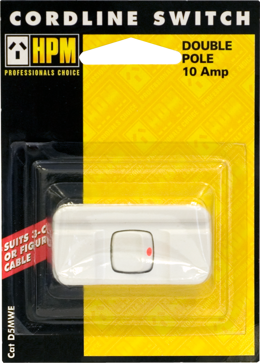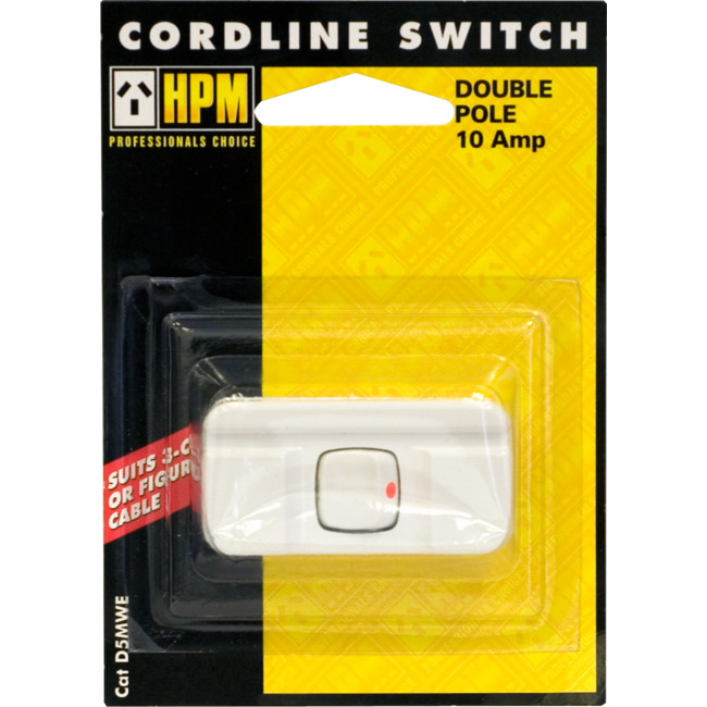 White Double pole in-line switch for flat or round cable,2-3 core with dual reversible cable clamp.