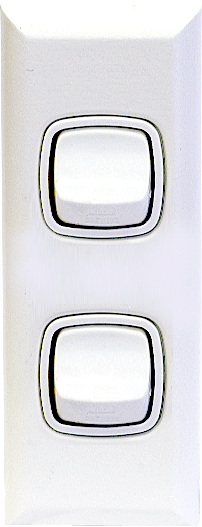 Dual flush mounting switch, with snap on "Excel" white cover plate