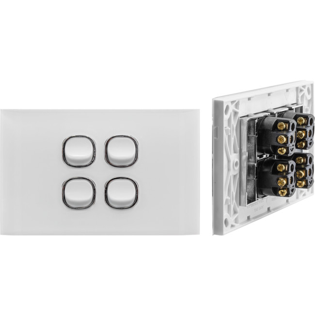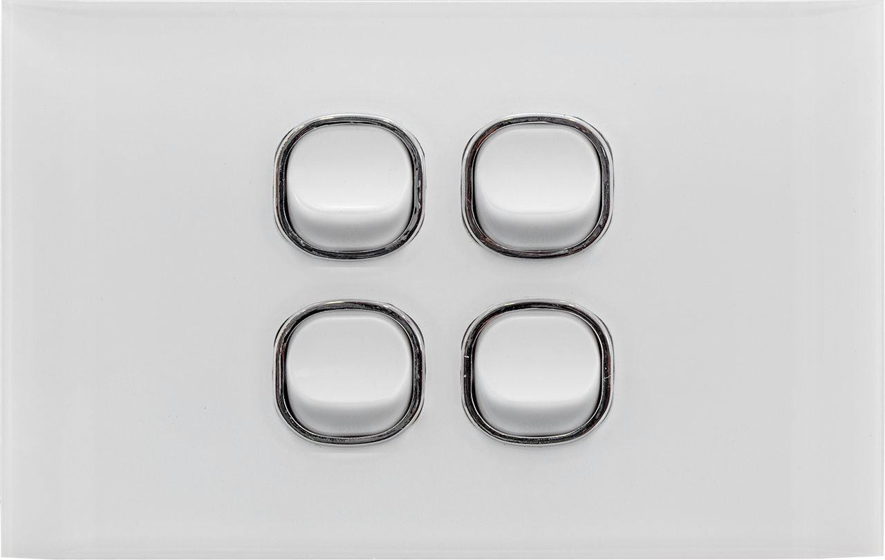 The Acrylic plate 4 Gang Light Switch has a plate size of74mm by 115mm. 2-way on-off switch