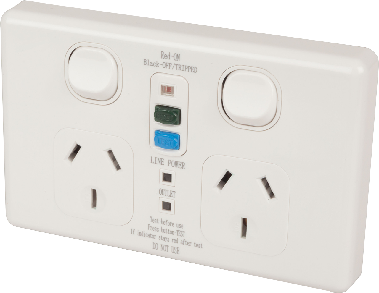 Designed to be a direct replacement for your standardGPO fittings, combining two standard 240AC 10A mains (GPO) outlets with a built-in RCD to provide protection against electrical shock. In the event of a fault with the connectedappliance or accident, such as cutting through the mains lead, the unit will provide complete isolation from mains. Atest button, status indicator, and reset button allows you to check the RCD, which we recommend should be done each time before use.
