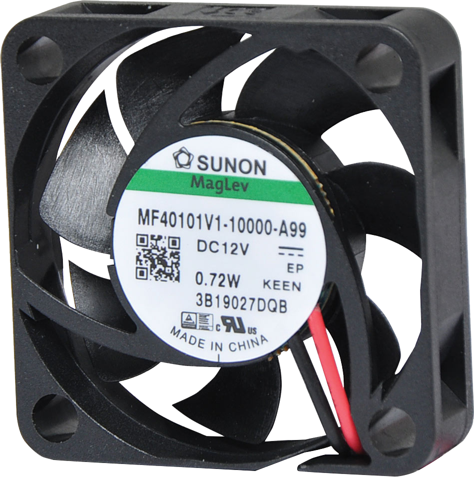 A 12V DC 40mm Sunon Maglev/Vapo Bearing Cooling Fan (#ME40101V1-0000-A99) with thermoplastic frame. Designed for long-life and minimal noise operation. Sunon fans are manufactured to a very high standard and hold CSA and UL listings. Altronics has been a Sunon distributor for many years and have found them to be of excellent overall quality and reliability. Note: Other models are available for your specific OEM requirements, please contact us for details. About Sunon Maglev Bearing Design Sunon's maglev bearing system provides whisper quiet operation and superior resistance to dust and debris, extending the operational lifetime of the motor.